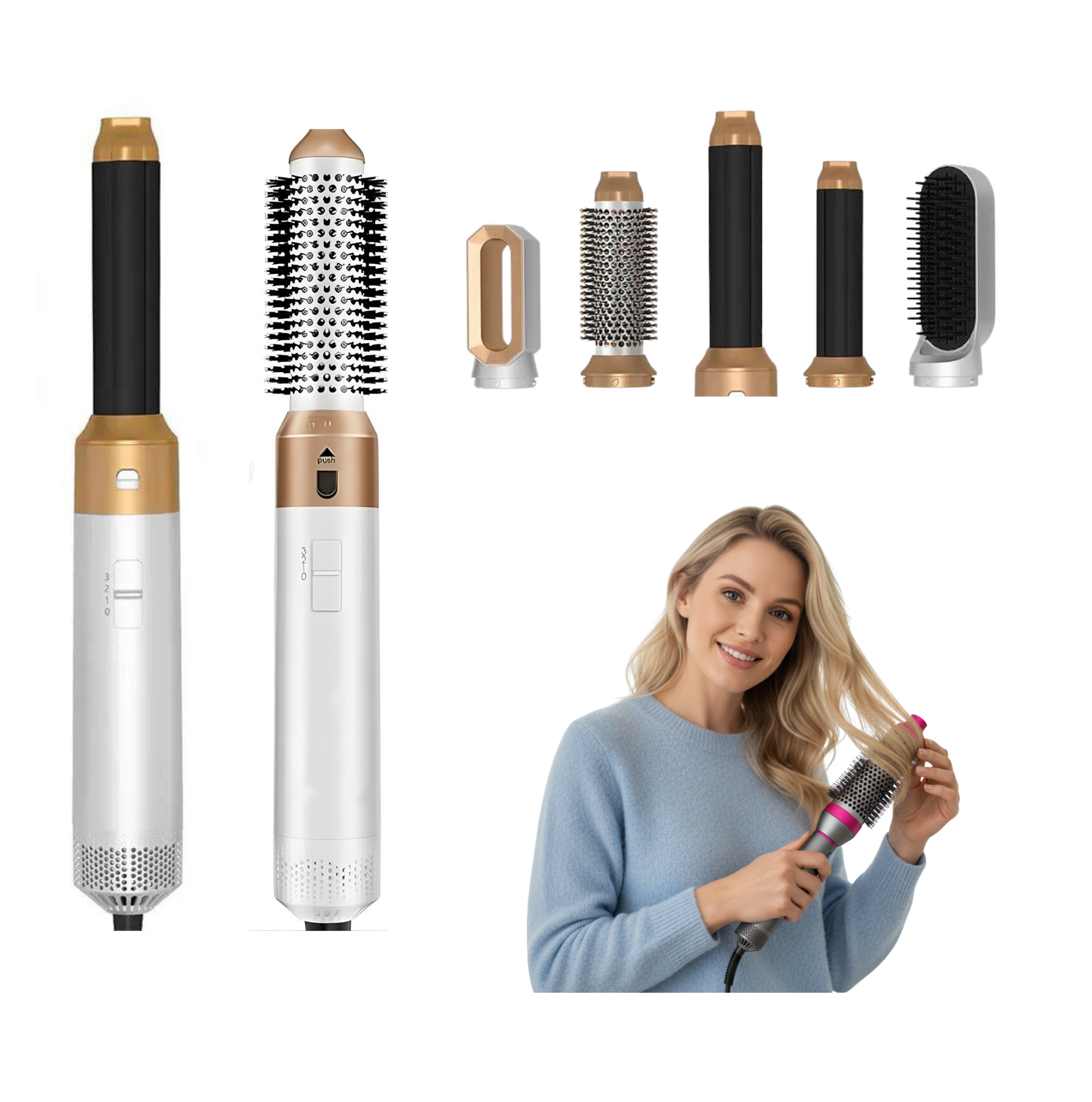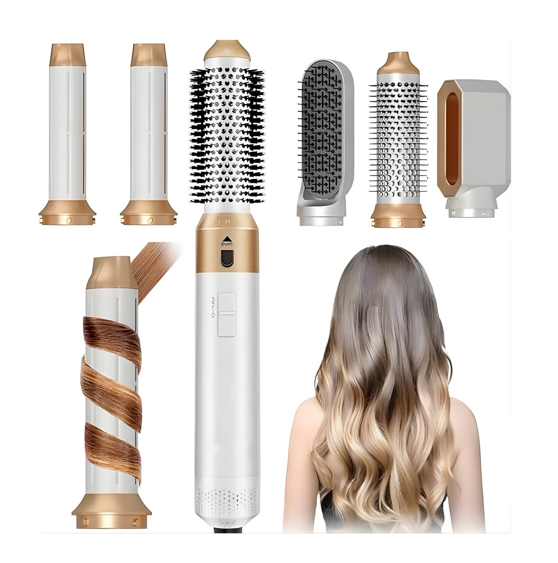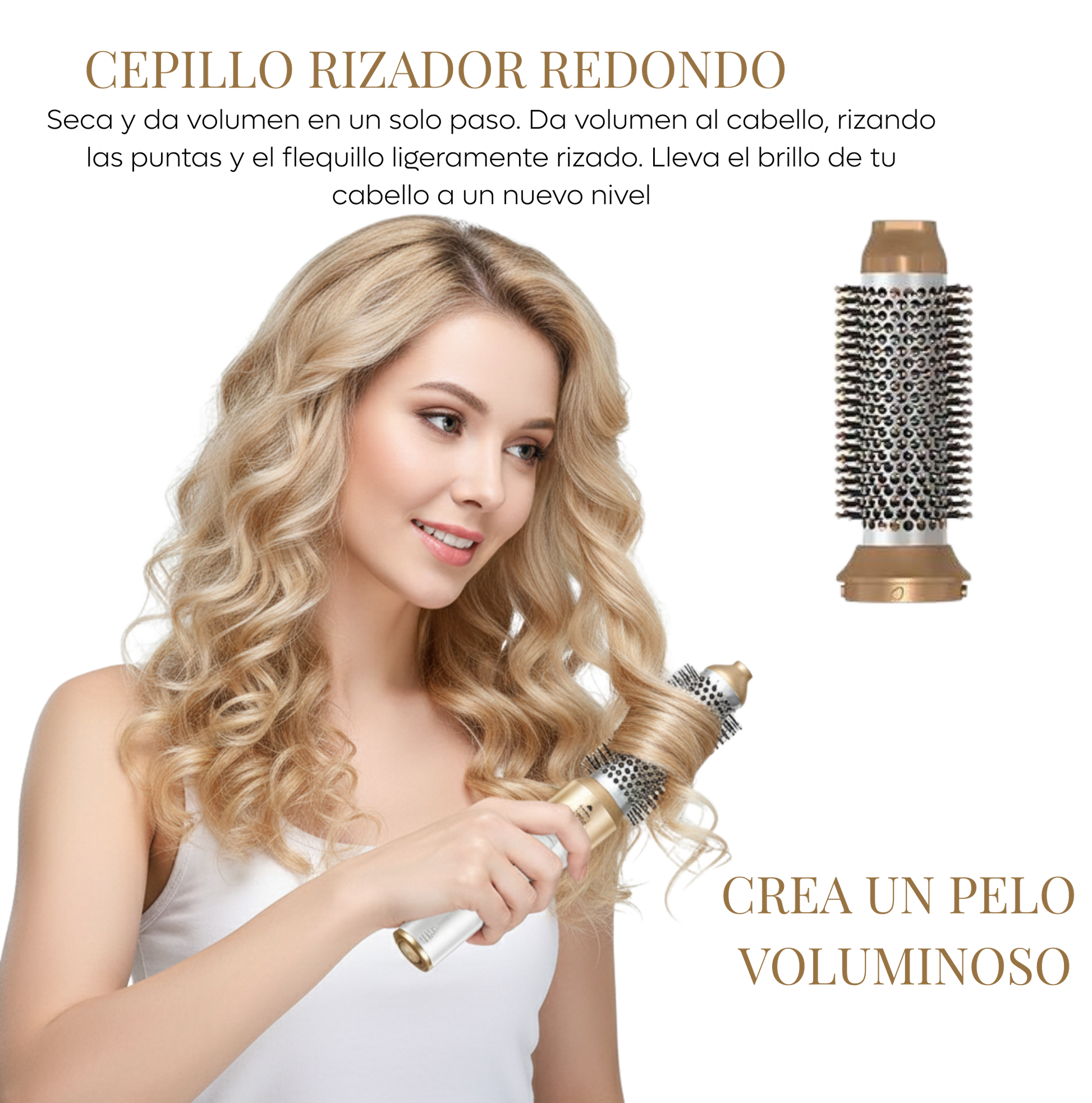 - 🌟 Versatilidad total — incluye 4 accesorios (rizador, cepillo paleta, cepillo redondo y boquilla) para crear cualquier estilo con un solo dispositivo.